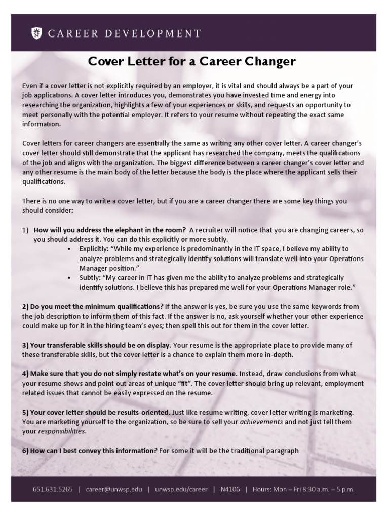 Here are some tips to keep in mind when writing a career change cover letter. Tips on writing a career change cover letter. More images for career change cover letter pdf » Cover letters allow you to emphasize how your previous experiences will help you to be the perfect fit in a new position. Mar 22, 2021 · tips for writing a career change cover letter.